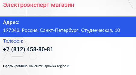 Электроэксперт, магазин по адресу 197343, Россия, Санкт-Петербург, Студенческая, 10 в дальнейшем Организация, размещена в следующих категориях: