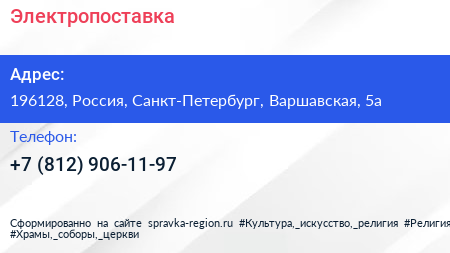 Электропоставка по адресу 196128, Россия, Санкт-Петербург, Варшавская, 5а в дальнейшем Организация, размещена в следующих категориях: