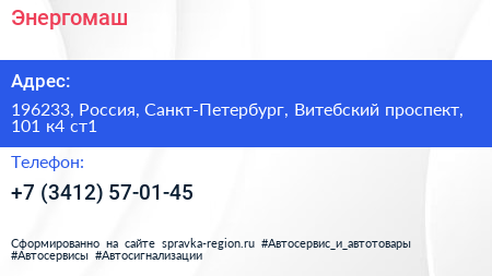 Энергомаш по адресу 196233, Россия, Санкт-Петербург, Витебский проспект, 101 к4 ст1 в дальнейшем Организация, размещена в следующих категориях:
