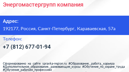 Энергомастергрупп, компания по адресу 192177, Россия, Санкт-Петербург, Караваевская, 57а в дальнейшем Организация, размещена в следующих категориях: