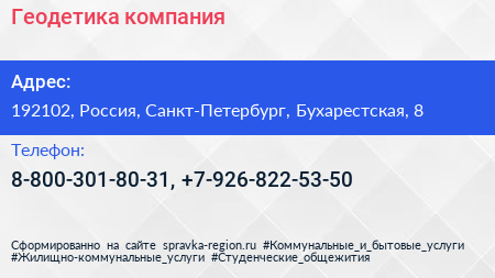 Геодетика, компания по адресу 192102, Россия, Санкт-Петербург, Бухарестская, 8 в дальнейшем Организация, размещена в следующих категориях:
