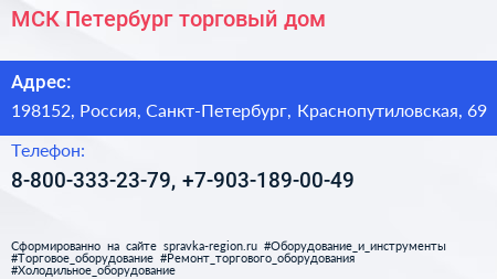 МСК Петербург, торговый дом по адресу 198152, Россия, Санкт-Петербург, Краснопутиловская, 69 в дальнейшем Организация, размещена в следующих категориях: