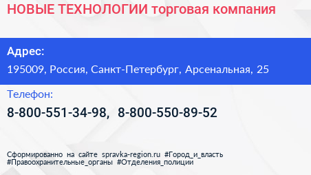 НОВЫЕ ТЕХНОЛОГИИ, торговая компания по адресу 195009, Россия, Санкт-Петербург, Арсенальная, 25 в дальнейшем Организация, размещена в следующих категориях: