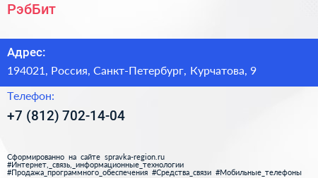 РэбБит по адресу 194021, Россия, Санкт-Петербург, Курчатова, 9 в дальнейшем Организация, размещена в следующих категориях: