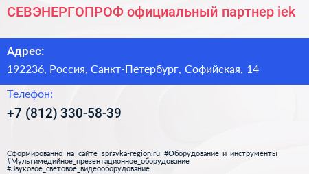 СЕВЭНЕРГОПРОФ, официальный партнер iek по адресу 192236, Россия, Санкт-Петербург, Софийская, 14 в дальнейшем Организация, размещена в следующих категориях: