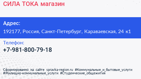 СИЛА-ТОКА, магазин по адресу 192177, Россия, Санкт-Петербург, Караваевская, 24 к1 в дальнейшем Организация, размещена в следующих категориях:
