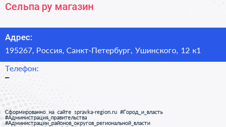 Сельпа.ру, магазин по адресу 195267, Россия, Санкт-Петербург, Ушинского, 12 к1 в дальнейшем Организация, размещена в следующих категориях: