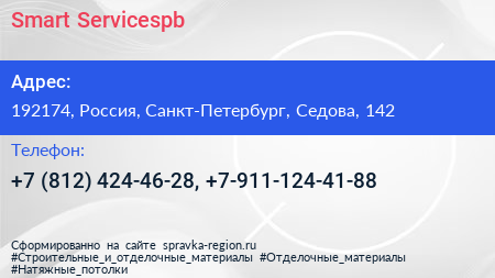 Smart-Servicespb по адресу 192174, Россия, Санкт-Петербург, Седова, 142 в дальнейшем Организация, размещена в следующих категориях: