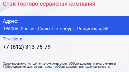 Стэк, торгово-сервисная компания по адресу 196006, Россия, Санкт-Петербург, Рощинская, 36 в дальнейшем Организация, размещена в следующих категориях: