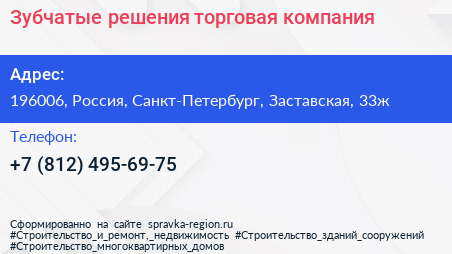 Зубчатые решения, торговая компания по адресу 196006, Россия, Санкт-Петербург, Заставская, 33ж в дальнейшем Организация, размещена в следующих категориях: