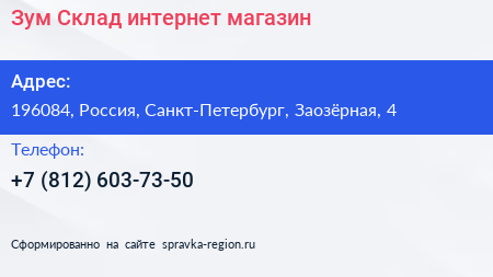 Зум-Склад, интернет-магазин по адресу 196084, Россия, Санкт-Петербург, Заозёрная, 4 в дальнейшем Организация, размещена в следующих категориях: