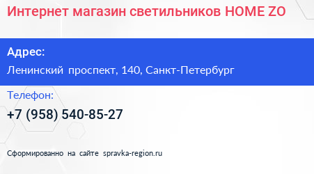 Интернет-магазин светильников HOME.ZO по адресу Ленинский проспект, 140, Санкт-Петербург в дальнейшем Организация, размещена в следующих категориях: