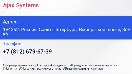 Ajax Systems по адресу 194362, Россия, Санкт-Петербург, Выборгское шоссе, 369 к6 в дальнейшем Организация, размещена в следующих категориях: