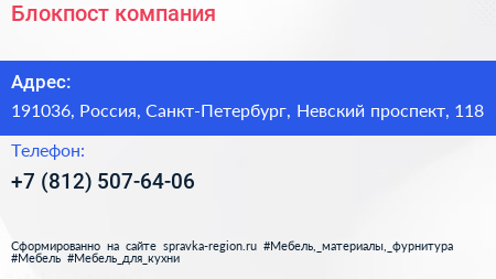 Блокпост, компания по адресу 191036, Россия, Санкт-Петербург, Невский проспект, 118 в дальнейшем Организация, размещена в следующих категориях: