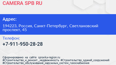 CAMERA.SPB.RU по адресу 194223, Россия, Санкт-Петербург, Светлановский проспект, 45 в дальнейшем Организация, размещена в следующих категориях: