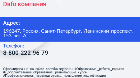 Dafo, компания по адресу 196247, Россия, Санкт-Петербург, Ленинский проспект, 153 лит А в дальнейшем Организация, размещена в следующих категориях: