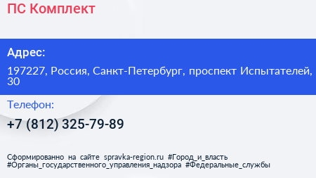ПС-Комплект по адресу 197227, Россия, Санкт-Петербург, проспект Испытателей, 30 в дальнейшем Организация, размещена в следующих категориях: