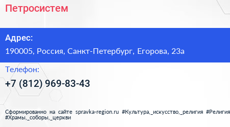 Петросистем по адресу 190005, Россия, Санкт-Петербург, Егорова, 23а в дальнейшем Организация, размещена в следующих категориях: