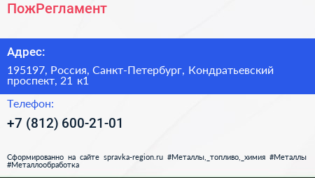 ПожРегламент по адресу 195197, Россия, Санкт-Петербург, Кондратьевский проспект, 21 к1 в дальнейшем Организация, размещена в следующих категориях: