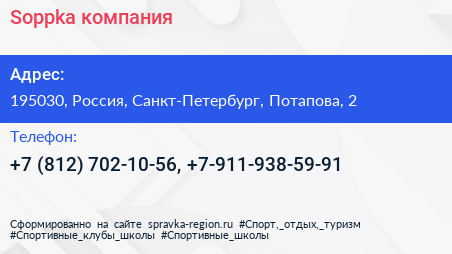 Для связи с организацией воспользуйтесь номером телефона: +7 (812) 702-10-56, +7-911-938-59-91. Пн: c 09:00-18:00, Вт: c 09:00-18:00, Ср: c 09:00-18:00, Чт: c 09:00-18:00, Пт: c 09:00-18:00, Сб: выходной, Вс: выходной, вы можете обратиться в эту организацию.