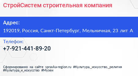 СтройСистем, строительная компания по адресу 192019, Россия, Санкт-Петербург, Мельничная, 23 лит А в дальнейшем Организация, размещена в следующих категориях: