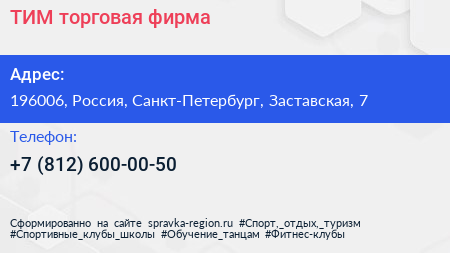 ТИМ, торговая фирма по адресу 196006, Россия, Санкт-Петербург, Заставская, 7 в дальнейшем Организация, размещена в следующих категориях: