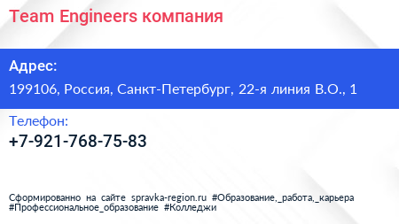 Team Engineers, компания по адресу 199106, Россия, Санкт-Петербург, 22-я линия В.О., 1 в дальнейшем Организация, размещена в следующих категориях: