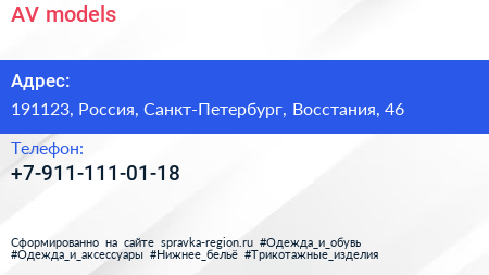 AV-models по адресу 191123, Россия, Санкт-Петербург, Восстания, 46 в дальнейшем Организация, размещена в следующих категориях: