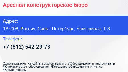 Арсенал, конструкторское бюро по адресу 195009, Россия, Санкт-Петербург, Комсомола, 1-3 в дальнейшем Организация, размещена в следующих категориях: