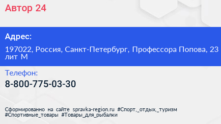 Автор 24 по адресу 197022, Россия, Санкт-Петербург, Профессора Попова, 23 лит М в дальнейшем Организация, размещена в следующих категориях: