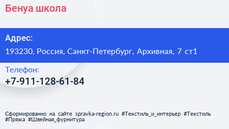 Бенуа, школа по адресу 193230, Россия, Санкт-Петербург, Архивная, 7 ст1 в дальнейшем Организация, размещена в следующих категориях: