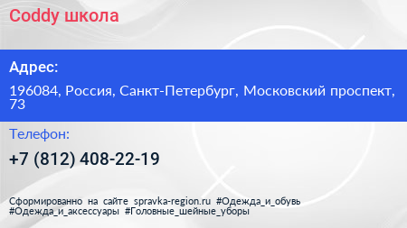 Coddy, школа по адресу 196084, Россия, Санкт-Петербург, Московский проспект, 73 в дальнейшем Организация, размещена в следующих категориях: