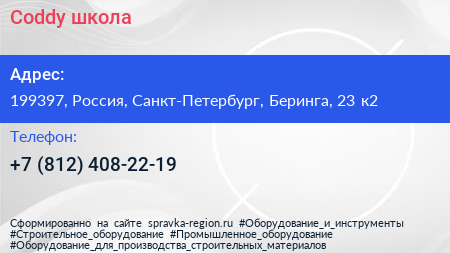 Coddy, школа по адресу 199397, Россия, Санкт-Петербург, Беринга, 23 к2 в дальнейшем Организация, размещена в следующих категориях: