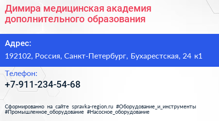 Димира, медицинская академия дополнительного образования по адресу 192102, Россия, Санкт-Петербург, Бухарестская, 24 к1 в дальнейшем Организация, размещена в следующих категориях: