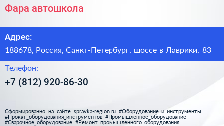 Фара, автошкола по адресу 188678, Россия, Санкт-Петербург, шоссе в Лаврики, 83 в дальнейшем Организация, размещена в следующих категориях: