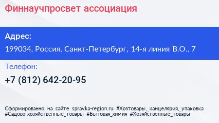 Финнаучпросвет, ассоциация по адресу 199034, Россия, Санкт-Петербург, 14-я линия В.О., 7 в дальнейшем Организация, размещена в следующих категориях:
