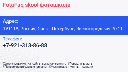 FotoFaq skool, фотошкола по адресу 191119, Россия, Санкт-Петербург, Звенигородская, 9/11 в дальнейшем Организация, размещена в следующих категориях: