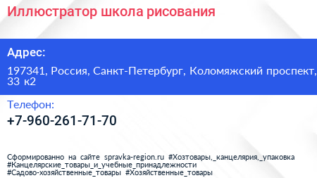 Иллюстратор, школа рисования по адресу 197341, Россия, Санкт-Петербург, Коломяжский проспект, 33 к2 в дальнейшем Организация, размещена в следующих категориях: