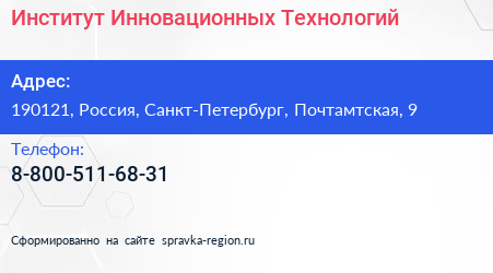 Институт Инновационных Технологий по адресу 190121, Россия, Санкт-Петербург, Почтамтская, 9 в дальнейшем Организация, размещена в следующих категориях: