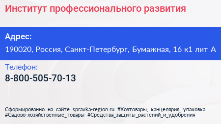Институт профессионального развития по адресу 190020, Россия, Санкт-Петербург, Бумажная, 16 к1 лит А в дальнейшем Организация, размещена в следующих категориях:
