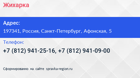 Жихарка по адресу 197341, Россия, Санкт-Петербург, Афонская, 5 в дальнейшем Организация, размещена в следующих категориях: