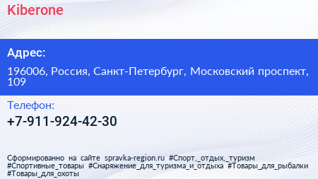 Kiberone по адресу 196006, Россия, Санкт-Петербург, Московский проспект, 109 в дальнейшем Организация, размещена в следующих категориях: