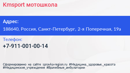 Kmsport, мотошкола по адресу 188640, Россия, Санкт-Петербург, 2-я Поперечная, 19а в дальнейшем Организация, размещена в следующих категориях: