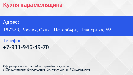 Кухня карамельщика по адресу 197373, Россия, Санкт-Петербург, Планерная, 59 в дальнейшем Организация, размещена в следующих категориях: