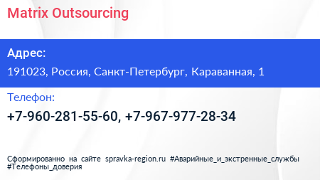 Matrix Outsourcing по адресу 191023, Россия, Санкт-Петербург, Караванная, 1 в дальнейшем Организация, размещена в следующих категориях: