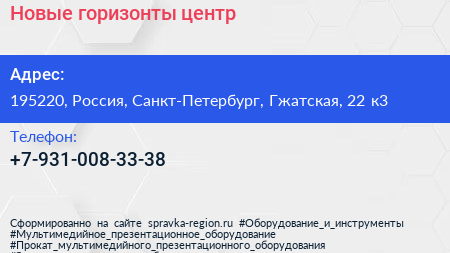 Новые горизонты, центр по адресу 195220, Россия, Санкт-Петербург, Гжатская, 22 к3 в дальнейшем Организация, размещена в следующих категориях: