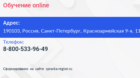 Обучение-online по адресу 190103, Россия, Санкт-Петербург, Красноармейская 9-я, 11 в дальнейшем Организация, размещена в следующих категориях: