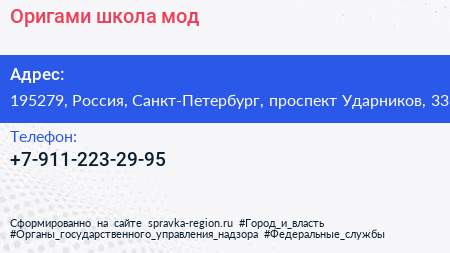 Оригами, школа мод по адресу 195279, Россия, Санкт-Петербург, проспект Ударников, 33 в дальнейшем Организация, размещена в следующих категориях: