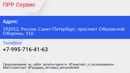 ПРР Сервис по адресу 192012, Россия, Санкт-Петербург, проспект Обуховской Обороны, 116 в дальнейшем Организация, размещена в следующих категориях: