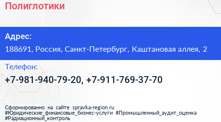 Полиглотики по адресу 188691, Россия, Санкт-Петербург, Каштановая аллея, 2 в дальнейшем Организация, размещена в следующих категориях: